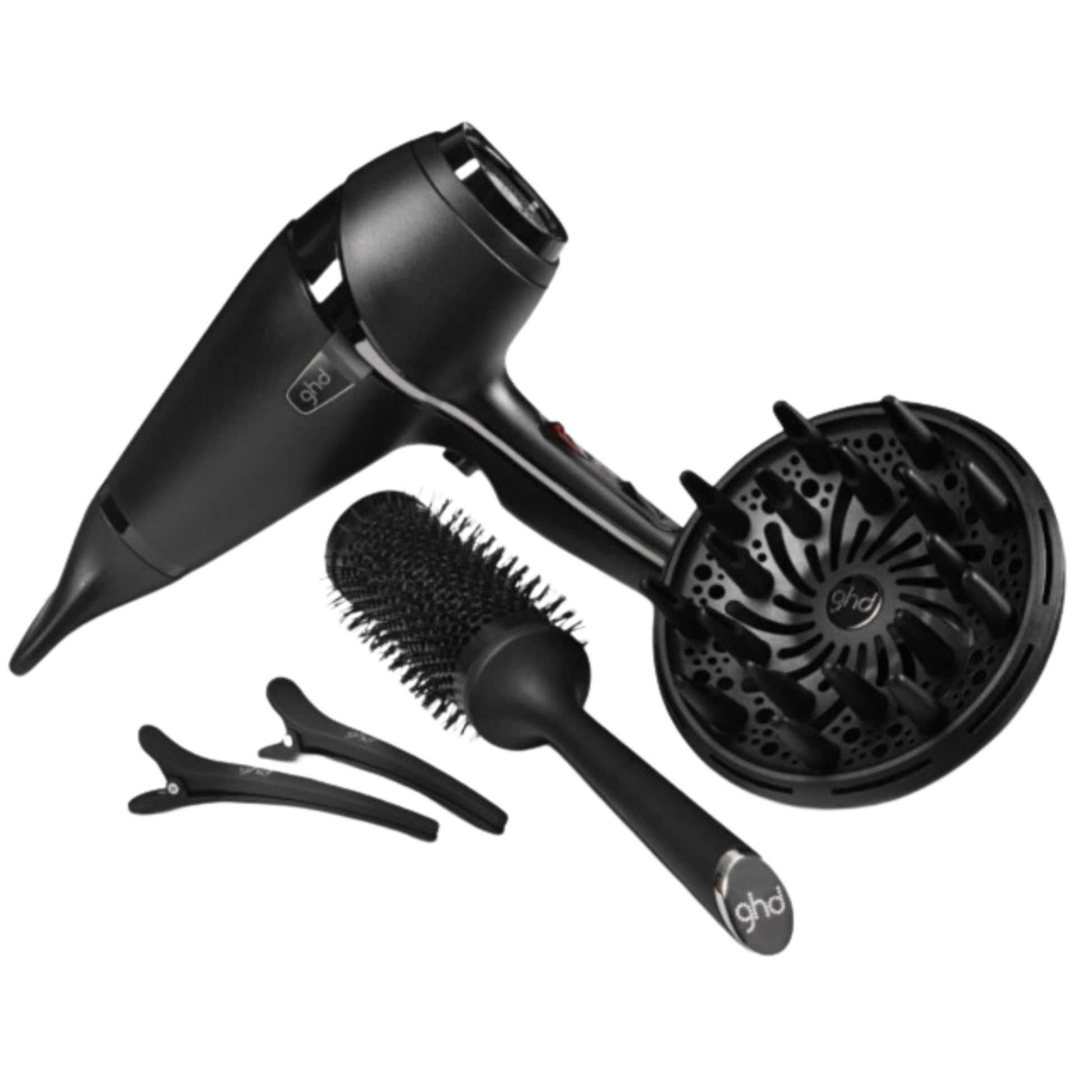 Bevat: de award winning ghd air® professionele föhn met ionentechnologie en een krachtige motor voor het supersnel drogen van je haar, voor een salon finish in de helft van de tijd*; een ghd air® diffuser voor het benadrukken van natuurlijke golven en volume; een breed opzetstuk voor precisie styling; twee haarclipjes voor meer stylinggemak; een ghd ceramic vented radial brush in maat 3, voor het creëren van body en volume tijdens het föhnen EN een ghd air® opbergtas voor het veilig opbergen van de föhn kit.