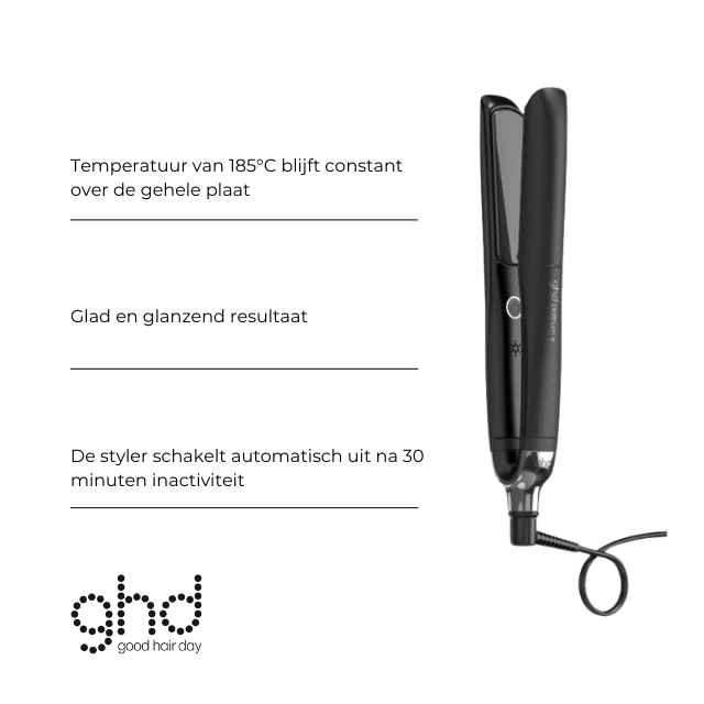 Met het unieke scharnierontwerp blijven de platen perfect uitgelijnd, wat zorgt voor optimale controle en flexibiliteit tijdens het stylen. Of je nu gaat voor een superstrakke look, zachte golven of glamoureuze krullen, de GHD Platinum+ Zwart stijltang biedt eindeloze stylingmogelijkheden. Dankzij de constante temperatuur hoef je je geen zorgen te maken over schade aan de haarstructuur. Voor de beste bescherming en resultaten wordt aangeraden om de stijltang te gebruiken in combinatie met de GHD Bodyguard hittebeschermende spray. Zo geniet je dagelijks van prachtig gestyled, gezond haar.