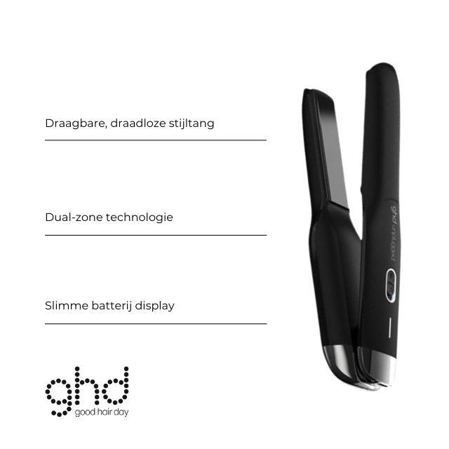 Maak kennis met een ware game changer. Onze eerste draadloze stijltang, de ghd unplugged in mat zwart voor een krachtige en perfecte styling waar je ook bent.