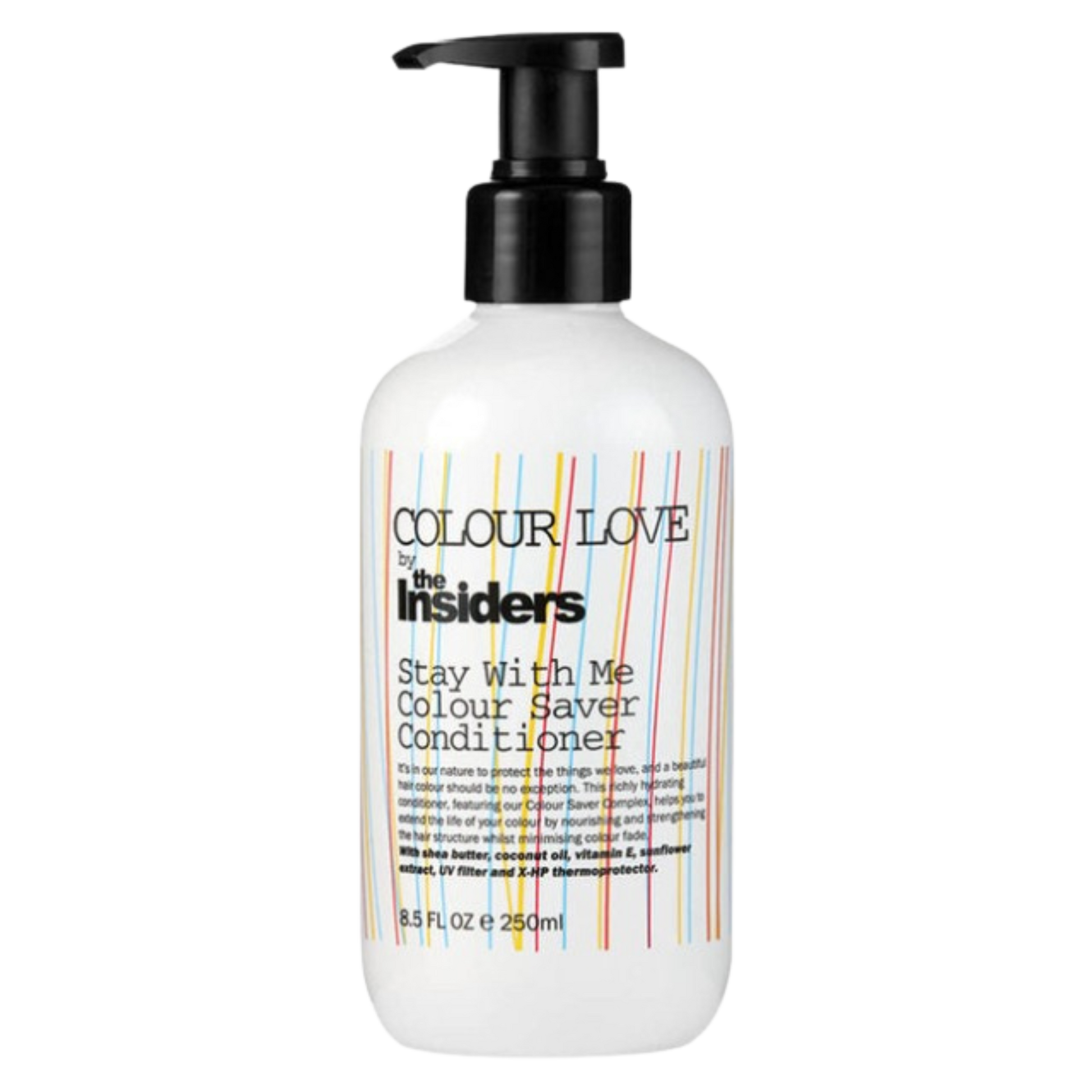 The Insiders Stay With Me Colour Saver Conditioner zorgt ervoor dat je haarkleur minder snel vervaagt. Doordat deze conditioner vrij is van parabenen en sulfaten blijft je haar kleur in tact. Door de fruitige en tropische geur van jasmijn, kokosnoot, groene appel en gras gaat je haar weer lekker ruiken.