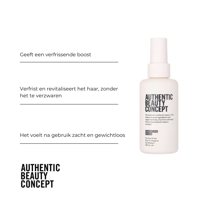 Experience the transformation with Authentic Beauty Concept Enhancing Water, a versatile leave-in spray mist for both hair and face. Embrace the lightweight yet nourishing formula, silicone-free, designed to enhance your hair's beauty while promoting a healthy, radiant appearance.
