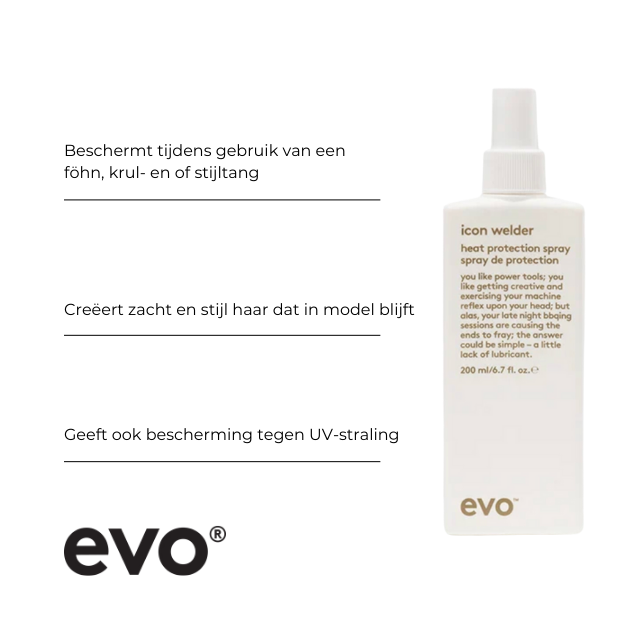 EVO Icon Welder Heat Protection Spray protects your hair while using a blow dryer, curling iron, or straightening iron. It also provides UV protection. You'll get soft, straight hair that stays in place. Suitable for all hair types, but especially for thick, coarse, and/or dry hair.