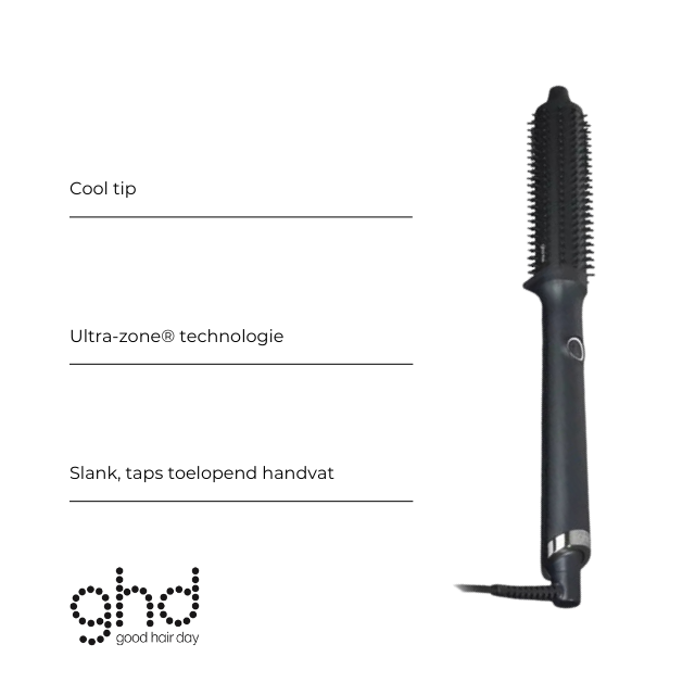 The ghd rise™ hot brush fits comfortably in your hand thanks to its streamlined, tapered brush head. The 2.7m cord makes it easy to use. The soft base protects the bristles and surfaces from damage, so you can brush with peace of mind anytime, anywhere with the ghd rise™.