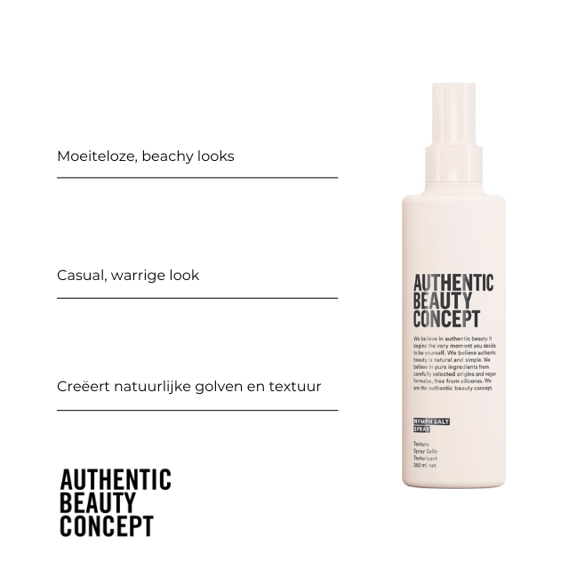 Discover the secrets of beachy waves with the Authentic Beauty Concept Nymph Salt Spray. This salt spray for hair is your ticket to effortless, beachy looks, even when you're far from the shore. The spray comes in a generous 250 ml bottle.
