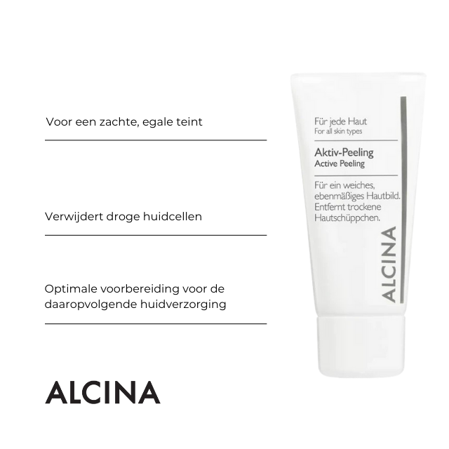 De optimale voorbereiding voor de daaropvolgende huidverzorging. De Alcina Active Peeling is perfect geschikt als huidverzorgingsproduct, het zorgt voor een zachte en egale teint en een mooie huid. De microfijne diatomeeënkorrels in de actieve peeling verwijderen op milde wijze droge huidschilfers en bereiden de gezichtshuid optimaal voor op de daaropvolgende cosmetica, zoals zelfbruinende of diepwerkende verzorgingsproducten.