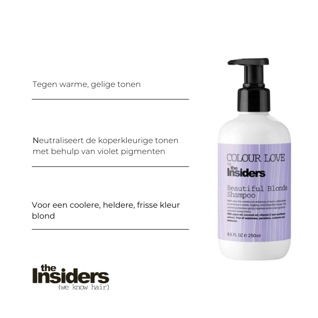 Was alle ongewenste warme, gelige tonen uit en omarm een coolere, heldere, frisse kleur blond. Deze verzorgende Beautiful Blonde Shampoo heeft een milde reiniging en neutraliseert tegelijkertijd de koperkleurige tonen met behulp van violet pigmenten.