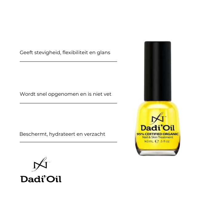 Dadi'Oil 72ml is een verzorgende olie voor de nagel en de huid. Gemaakt om de huid te voeden en te verzorgen en om flexibiliteit, stevigheid en glans te geven aan de natuurlijke nagel en aan nagelproducten!