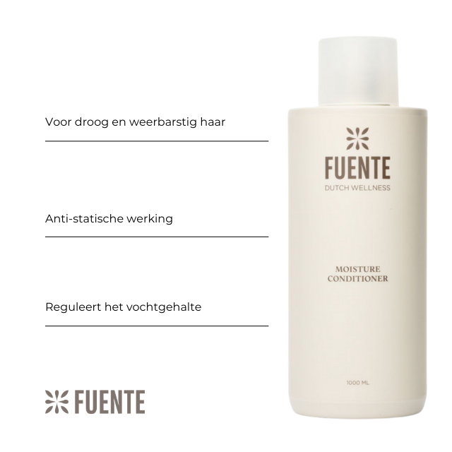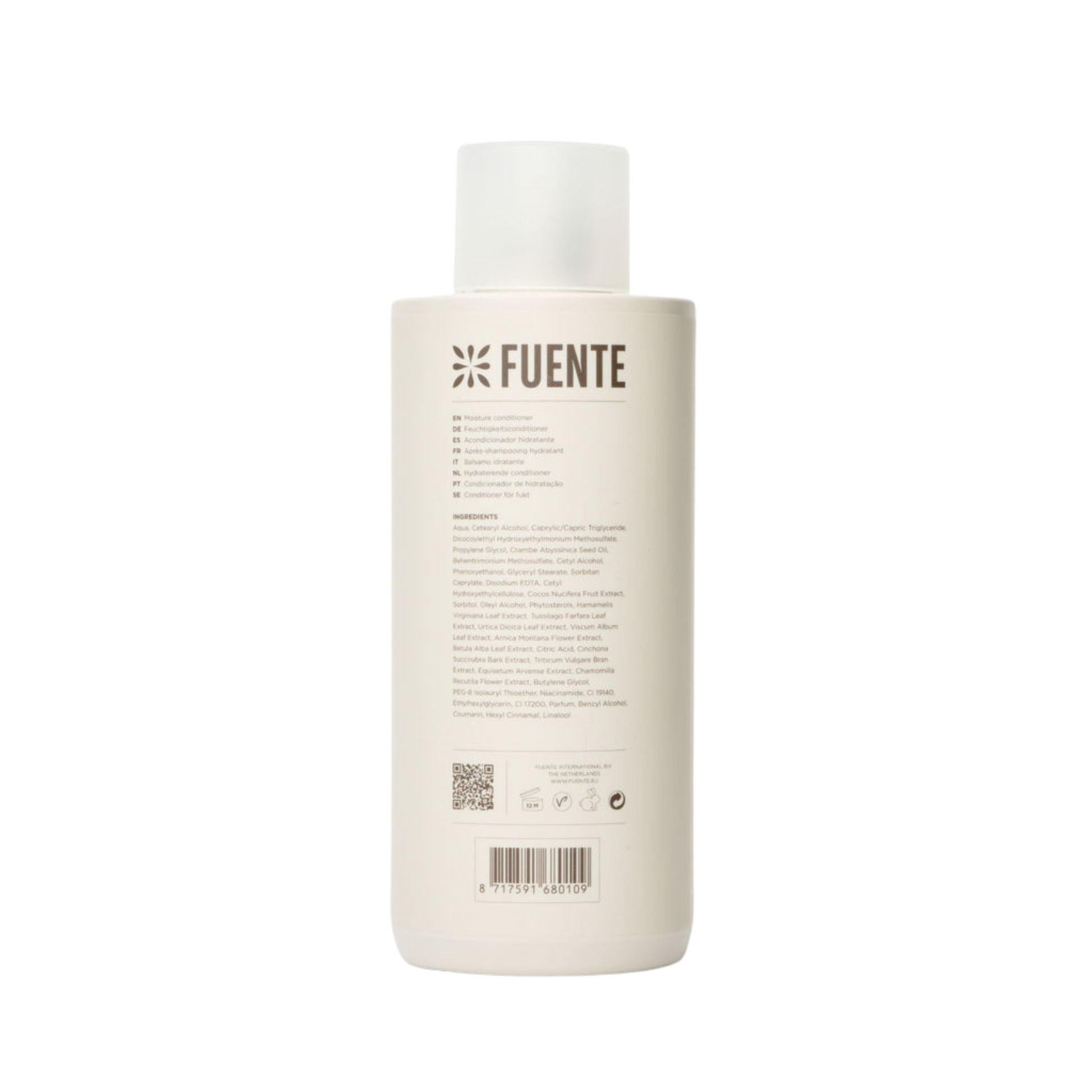 Moisture Conditioner is speciaal voor droog en weerbarstig haar. Deze intensieve conditioner reguleert het vochtgehalte van haar en hoofdhuid en herstelt, geeft soepelheid, veerkracht en glans. Ook werkt deze conditioner positief op de elasticiteit van het haar. Voor optimaal resultaat gebruik je ook de andere producten uit de Fuente Moisture lijn.