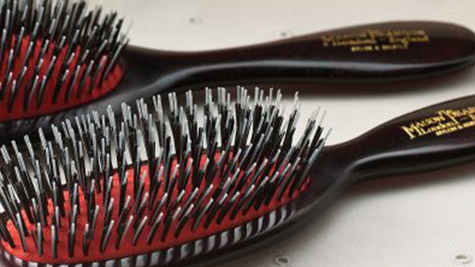 Neem de Mason Pearson Pocket B4 en kam het haar volledig vrij van klitten.