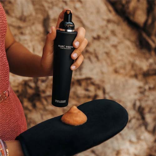 Met de MARC INBANE Natural Tanning Mousse heb je tot 9 dagen lang een zomerse teint en energieke uitstraling! Het unieke 3e generatie Hyaluronzuur-SLMW in de tanning mousse, dringt als enige hyaluronzuur door tot in de diepere huidlagen; het verbetert de huidstructuur, stimuleert de vorming van collageen en werkt als een superieure moisturizer!