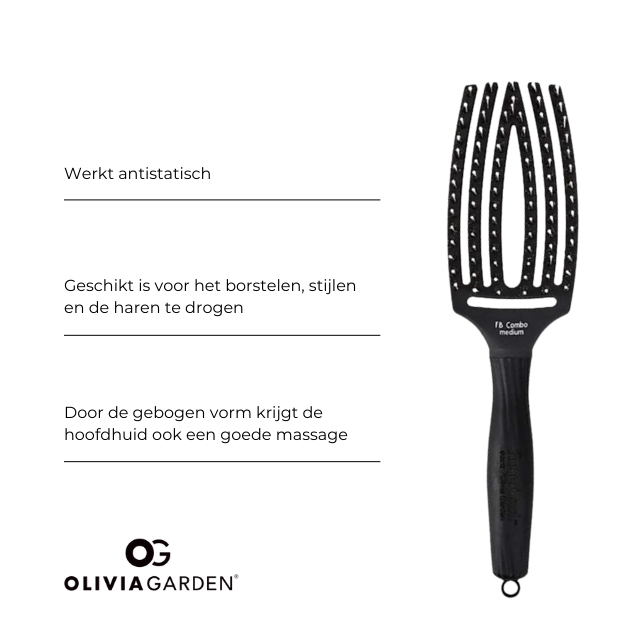 Fall Combo Medium is een ontwarrende borstel met een mix van geïoniseerde borstelharen en 100% everzwijnharen. De borstel is licht gebogen met openingen. Door de openingen kan de warme lucht van een föhn overal goed bij en zal je haar sneller drogen. Elimineert kroezen en weerbarstige haarlokken. Geeft een gladde, glanzende afwerking.