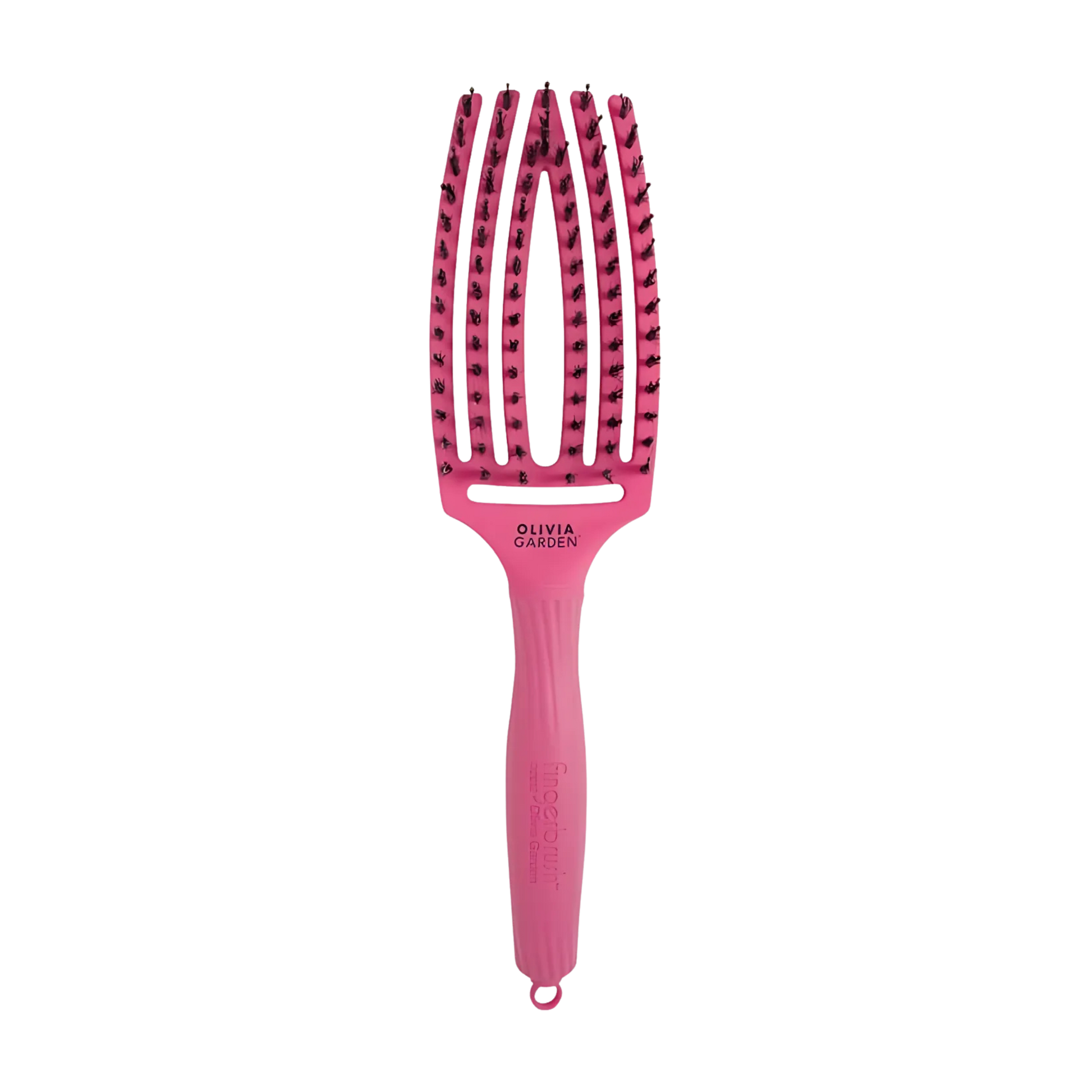 De Fingerbrush Boar & Nylon is een licht gebogen en geventileerde haarborstel voorzien van zowel geïoniseerde borstelharen als 100% everzwijnharen waardoor hij geschikt is voor het borstelen, stijlen en de haren te drogen. Door zijn gebogen vorm krijgt de hoofdhuid ook een goede massage.