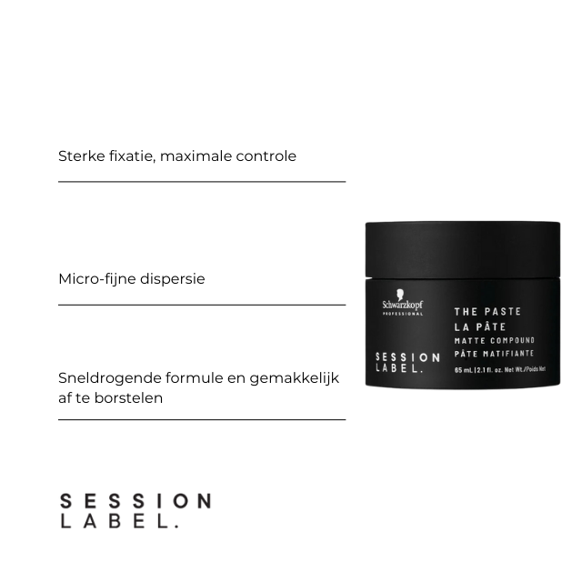 SESSION LABEL's THE PASTE is een vegan kneedbare matte stylingpasta met een flexibele textuur voor meer volume en definitie.
