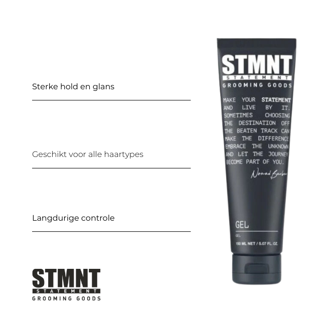 De STMNT Gel is een klassieke haargel met een statement-makende twist dankzij de unieke formule met houtskool voor een satijnen finish zonder flakes. Met de gel creëer je een kapsel met stevige, langdurige fixatie voor een absolute STATEMENT look. Heb je je statement gemaakt? Dan was je de Gel gemakkelijk uit het haar.