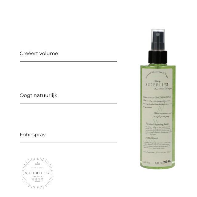 De Superli ’37 Grooming Tonic is een fantastische haartonic met extra versteviging. Deze tonic geeft het haar extra volume en een natuurlijke look.