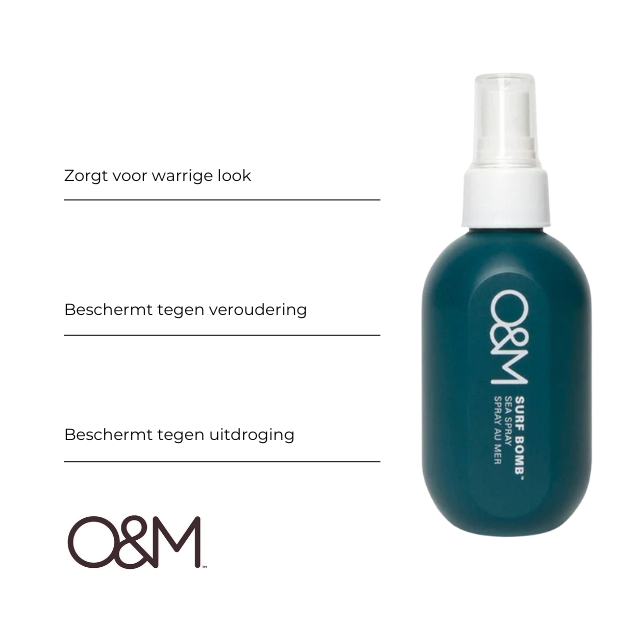 De O&M Surf Bomb Sea Spray is een shot uit de zee wanneer een duik in de oceaan niet mogelijk is. Surf Bomb geeft dat typische nonchalante, sexy look zonder dat het haar uitgedroogd wordt of dat je zand vindt in je badkamer.