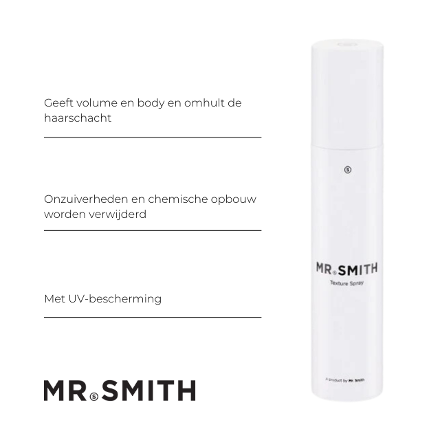 De Mr. Smith Texture Spray is een texturerende spray die ideaal is om meer leven in het kapsel te creëren. Deze fijne spray geeft meer volume en body aan het haar waardoor je de illusie van voller haar kan maken. De spray heeft een lichte formule waardoor het je haar niet verzwaart en het resultaat lang zichtbaar is. Açaibes-, papaja- en quandong-extracten revitaliseren de wortels van het haar, beschermen tegen UV-stralingen, bieden kracht en voorzien je lokken van een prachtige glans. Dit terwijl onzuiverheden en chemische opeenhopingen worden verwijderd. De formule is PETA gecertificeerd, vega en vrij van parabenen, sulfaten en siliconen.